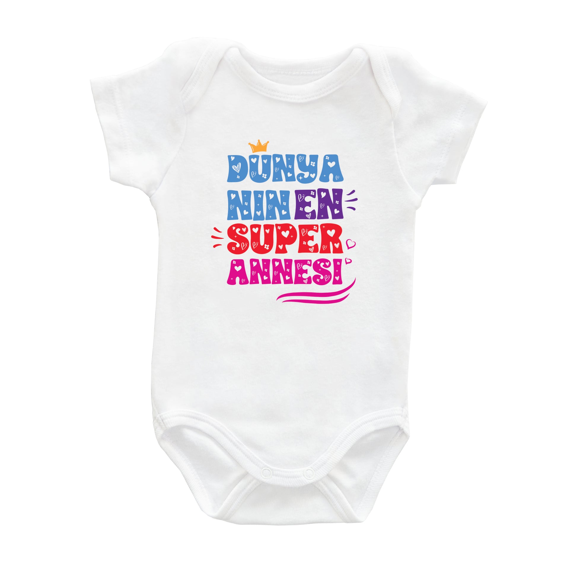 Dünyanın En Süper Annesi – %100 Pamuk Baskılı Bebek Badi | Kivvy SoftTouch™